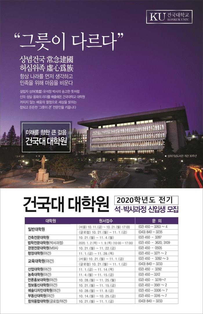 | ▲ 건국대 대학원이 2020 신입생을 모집한다. |