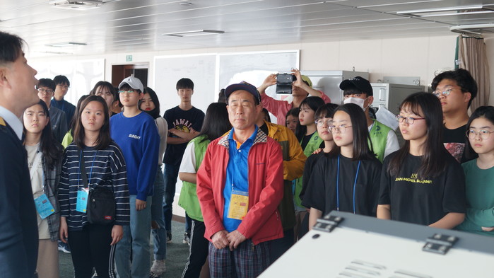 | ▲항해실 견학 중인 참가학생과 교사들 |