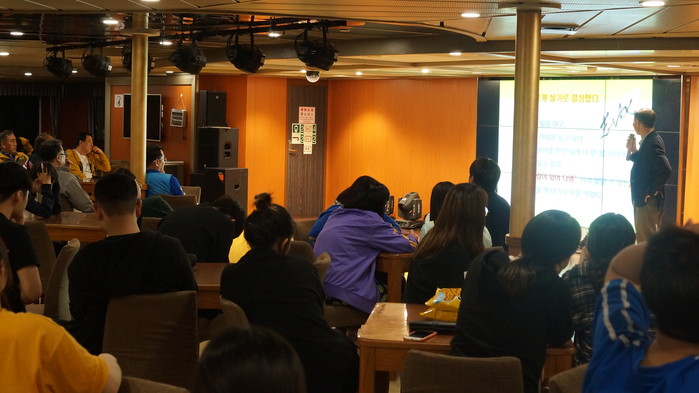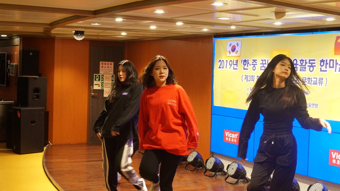선상에서는 학생들에게 중국에 대한 이해를 돕기 위한 특강과, 연태애화쌍어학교에서 공연할 문화교류 참가팀인 무학여자고등학교와 무학중학교 Kpop 동아리의 사전 리허설이 열렸다.