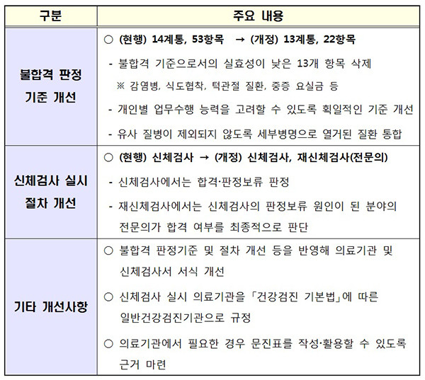 | ▲ 공무원 채용 신체검사 규정 개정안 주요 내용. <자료 : 인사혁신처> |