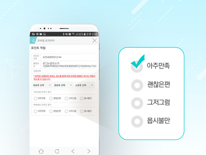 | ▲ 택배포인트 적립 단계에서 이뤄지는 상품, 배송 평가. |
