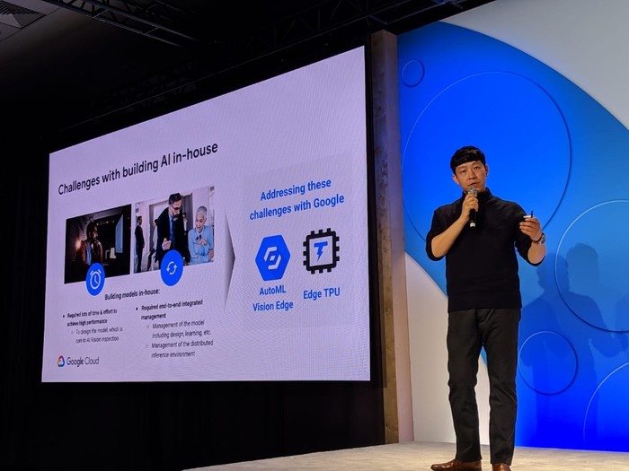 이날 발표에 나선 LG CNS AI빅데이터담당 이성욱 상무는 구글과 협력해 제조공장 부품 불량 판정에 AI 이미지 판독 기술을 적용한 비전검사 사례를 소개했다.