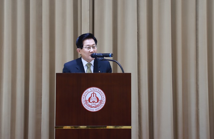 | ▲ 2020년 시무식 “신년감사예배”에서 세종대 배덕효 총장이 축사를 하고 있다. <사진 : 세종대학교> |