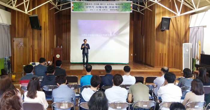 이번 연수는 베스트셀러 소설 ‘연탄길’의 저자인 이철환 작가가 ‘마음으로 바라보기’라는 주제로 사람의 마음을 얻는 방법에 대해 진행했다.