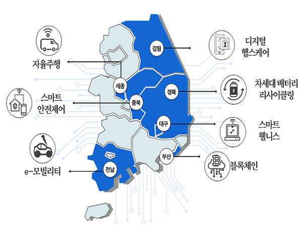 승인된 특구계획은 강원의 디지털 헬스케어, 대구의 스마트 웰니스, 전남의 e모빌리티, 충북의 스마트 안전, 경북의 차세대 배터리 리사이클링, 부산의 블록체인, 세종의 자율주행 등 7개 지역과 사업이다.