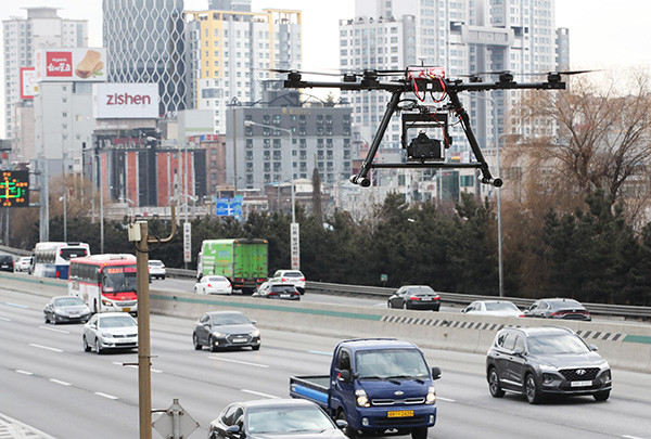 | ▲ 연휴기간 고속도로에서 교통단속을 하고 있는 드론. <사진 : 연합뉴스> |