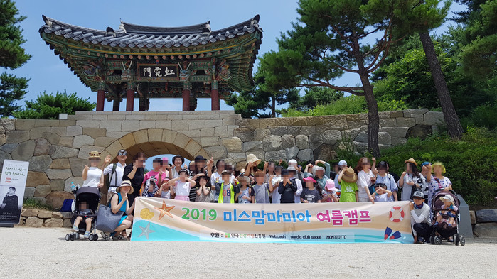| ▲강원도에서 2박 3일 일정으로 진행한 2019 미스맘마미아 여름캠프에서 단체 사진 촬영이 이뤄지고 있다. |