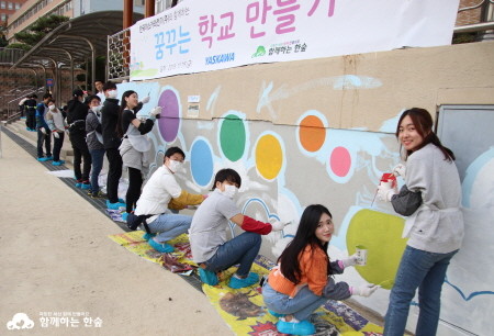 함께하는 한숲은 한국야스카와전기 임직원들과 10월 25일 아이들의 아름다운 등굣길을 선물하는 사랑의 벽화그리기 봉사활동을 열었다.