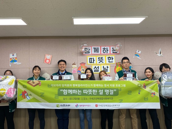 13일 이브자리는 국내 최대 사회공헌 연합체 행복얼라이언스와 함께 서울 강북구 삼양동에 위치한 구세군강북종합사회복지관을 찾았다. 봉사에 참여한 이브자리 임직원들은 복지관 아동들과 짝을 지어 설 음식을 만들고 윷놀이 등 설 전통놀이를 진행했다.