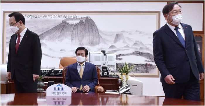 [한국온라인뉴스 김선영 기자] 여야 원내대표가 1일 오전 박병석 국회의장과 회동한 자리에서 北 원전건설 지원 의혹을 놓고 신경전을 벌였다.