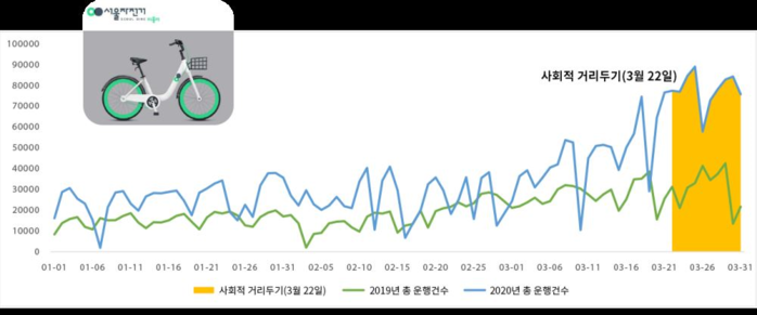 ▲ 사회적 거리두기 전후 서울시 공공자전거 이용현황 |