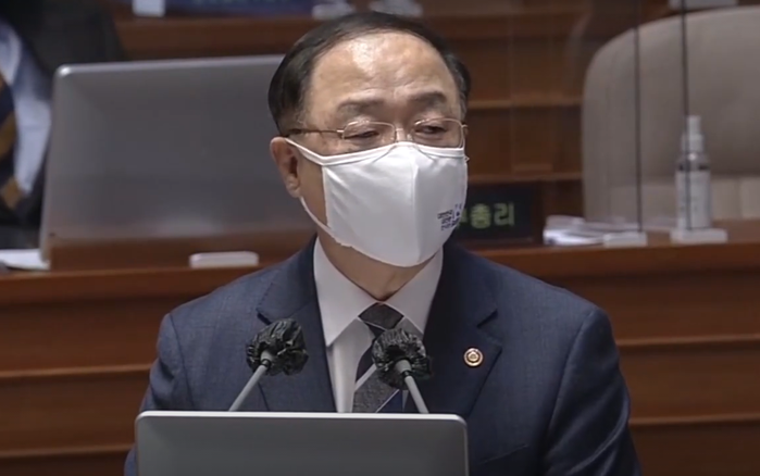 [한국온라인뉴스 김선영 기자] 5일 국회 경제분야 대정부질문에서 4차 재난지원금을 두고 여당이 홍남기 부총리를 계속 압박하는 가운데 홍 부총리는 “재정 당국이 재정 건전성을 보는 시각에 대해 존중해달라”며, "국가채무가 늘어나는 속도, 재정적자가 나타나고 다시 회복되는 가능성 등을 감안해야 하며 국가신용등급 문제도 고려하지 않을 수 없다"고 말했다.